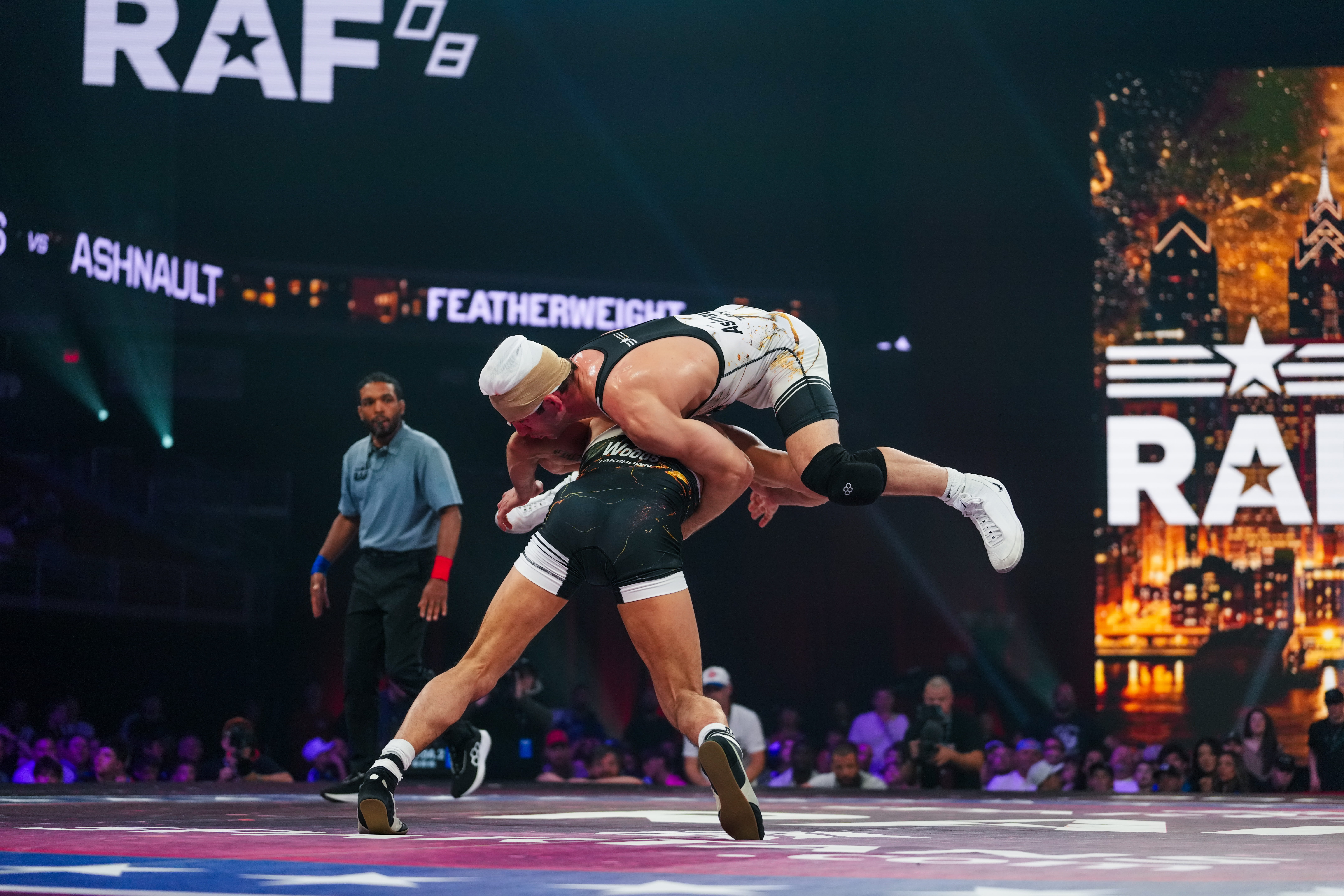 Real Woods was on the hunt for a bounce back victory after two last-second losses to Jordan Oliver that saw him lose his title and undefeated RAF record. A match against NCAA Champion Anthony Ashnault to right the ship would be no easy task at all and the first period showed that.
